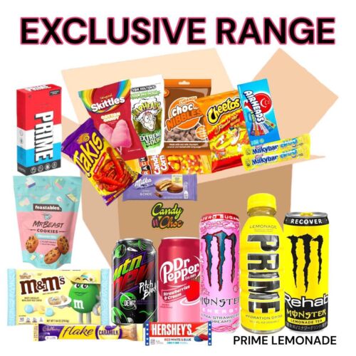 Scatola regalo caramelle American Sweets Hamper USA Prime Lemonade Monster Energy NUOVA-